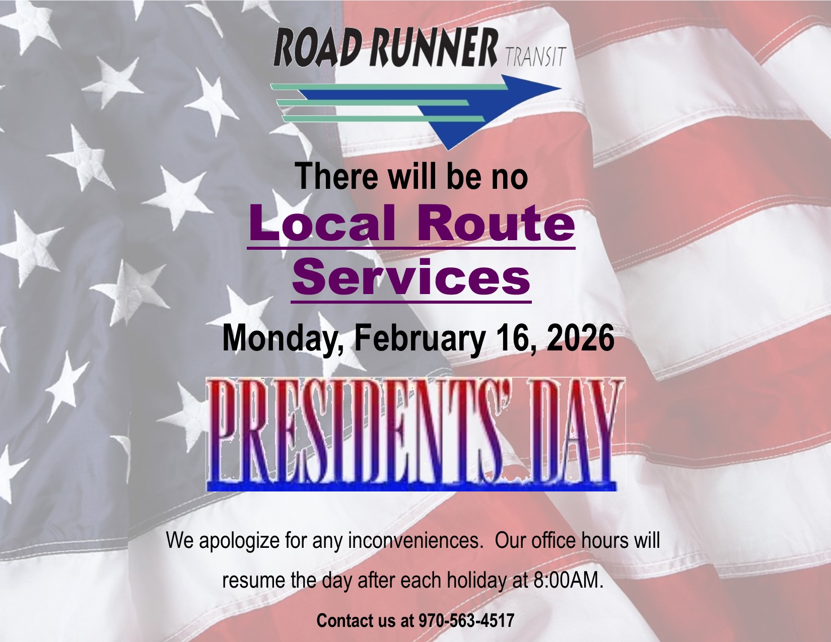 Passengers with disabilities may request modifications to current service procedures to access the service. To make a route modification request due to a disability, please call us at 970-563-4545 or email us at roadrunner@sococaa.org.
